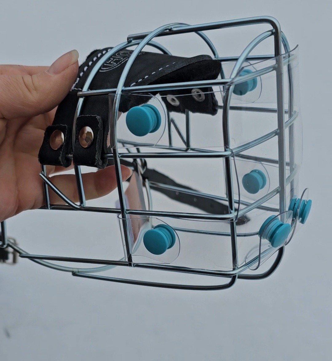 Ein PVC-Fressschutz für einen Draht-Maulkorb ist eine ergänzende Vorrichtung, die an der Vorderseite oder im unteren Bereich des Maulkorbs angebracht wird, um zu verhindern, dass der Hund unterwegs unerwünschte Gegenstände wie Futterreste, Kot oder Müll aufnimmt, wobei das Material PVC aufgrund seiner glatten, robusten und leicht zu reinigenden Eigenschaften häufig verwendet wird, gleichzeitig aber darauf geachtet werden muss, dass der Luftaustausch und die Möglichkeit zum Hecheln nicht eingeschränkt werden, da dies für die Thermoregulation des Hundes essenziell ist, zudem sollte der Fressschutz so montiert sein, dass er stabil sitzt, keine scharfen Kanten aufweist und weder Druckstellen noch Scheuerstellen verursacht, wobei trotz dieser Schutzfunktion keine hundertprozentige Garantie besteht, dass der Hund keinerlei Gegenstände mehr aufnehmen kann, da dies auch vom individuellen Verhalten und der Situation abhängt. Meinen PVC-Fressschutz könnt Ihr ganz leicht anbringen und entfernen, dank Druckknöpfen